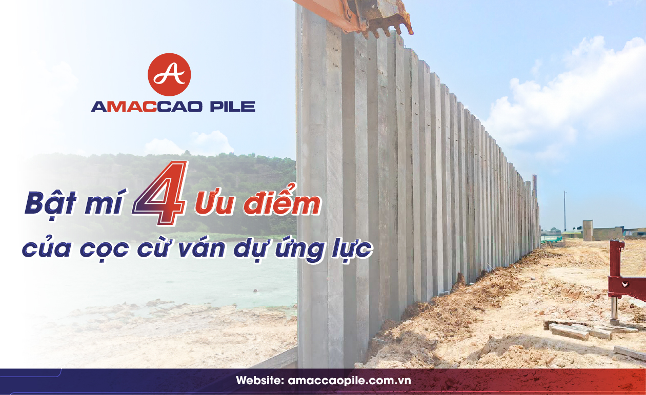 Cọc cừ ván dự ứng lực AMACCAO có chủng loại đa dạng, đặc biệt là thi công dễ dàng, chính xác không cần mặt bằng rộng, giảm thiểu tối đa công tác dẫn dòng thi công…