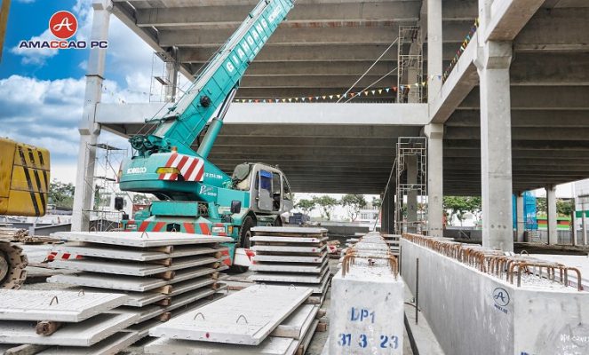Giải pháp thi công lắp ghép cấu kiện bê tông đúc sẵn là công nghệ thi công lắp ghép tại hiện trường, sử dụng các cấu kiện bê tông đã được đúc sẵn ở nhà máy rồi được vận chuyển đến công trường để lắp ghép thành các kết cấu chịu lực, các cấu kiện này sẽ được liên kết bằng các mối liên kết bê tông. Hiện nay, giải pháp này đang rất được ưa chuộng và áp dụng rộng rãi tại thị trường Việt Nam bởi không những mang lại nhiều ưu điểm vượt bậc với độ bền cao, chi phí hợp lý, tiết kiệm nguyên vật liệu mà còn giúp rút ngắn thời gian xây dựng, đảm bảo các yêu cầu cao về tính thẩm mỹ, công năng và chất lượng công trình.